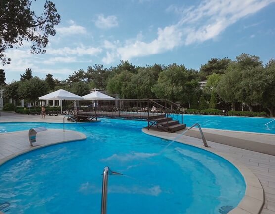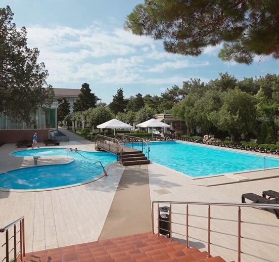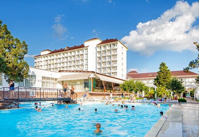 Инфраструктура санатория достаточно развита и включает в себя собственный благоустроенный пляж, медицинский центр, открытые и крытый бассейны, один из них крытый, бассейн разделен на несколько зон – плавательная, детская и СПА-зона, а также рестораны, кафе, конференц-зал, а также медицинская лаборатория, спа-салон. Открытые подогреваемые бассейны для взрослых и детей располагаются на двух береговых линиях.